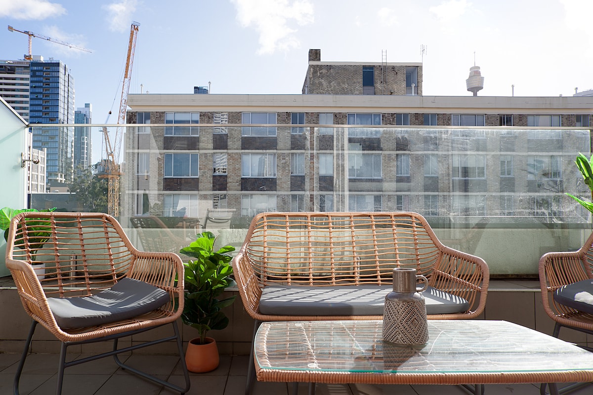 Keskimääräinen arvio 4,97/5, 243 arvostelua4,97 (243)Tyylikäs Sydney CBD Oasis, jossa on näkymät ylimmältä kerrokselta ja kattoterassi
