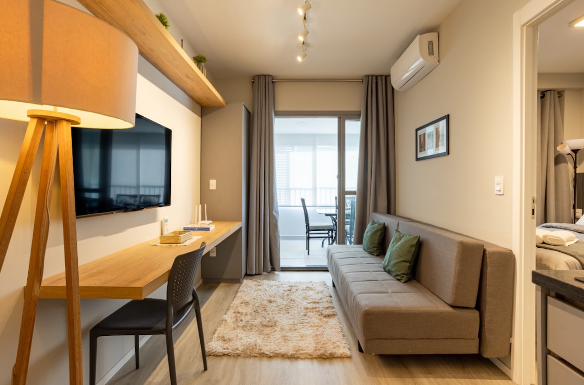 29 m²:n yksiö, jossa on korkeatasoinen sisustus, joka on suunniteltu lyhyisiin tai pitkiin oleskeluihin. Täydellinen pariskunnille, yksin matkustaville vapaa-ajan tai työmatkailijoille tai perheille, joilla on yksi lapsi. Tilat jopa 3 hengelle. Asunto 700 metrin päässä São Judasin asemalta rauhallisella ja hiljaisella kadulla. Täydellinen rakenne, joka vastaanottaa sinut mukavasti, turvallisesti, esteettömästi ja sijainnista riippumatta. Lähellä São Paulo Expo, Congonhasin lentokenttä, Shopping Plaza Sul, Blue Fit ja São Judasin metroasema (sininen linja).