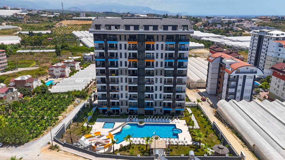 Welcome to your modern home away from home ideal for families who value cleanliness, comfort, and peace 🌿☀️ 📍Located on the beautiful Alanya coastline where the blue of the sea meets lush greenery, our fully-equipped apartment is part of a hotel-style complex offering fantastic amenities: pool, water slide, sauna, spa, Turkish bath, and BBQ area. Whether you're seeking fun or tranquility, this is the perfect spot for both 🧘♀️🌊