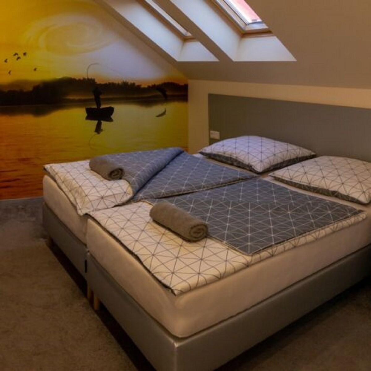 Huomioitavaa: Varattavissa olevat majoitukset: Koko talo (6 kahden hengen huonetta) Mukavuudet: ▸Ilmainen WIFI ▸Polkupyöränvuokraus ▸Hyvinvointialue (poreallas ja sauna) ▸Leikkikenttä ▸Mahdollisuus vuokrata vene Vartioitu pysäköinti pihalla ▸kameralla (ilmainen) ▸Ilmastoidut huoneet ▸LCD-televisio ▸Leikkikenttä lapsille ▸Kalastusta lähistöllä omalla laiturillaan Kylpylä ja lämpökylpy▸ 5 km: n säteellä sekä liukumäki ja rantaaltaat ▸SZÉP-kortin hyväksymispiste: OTP, MKB, K&H