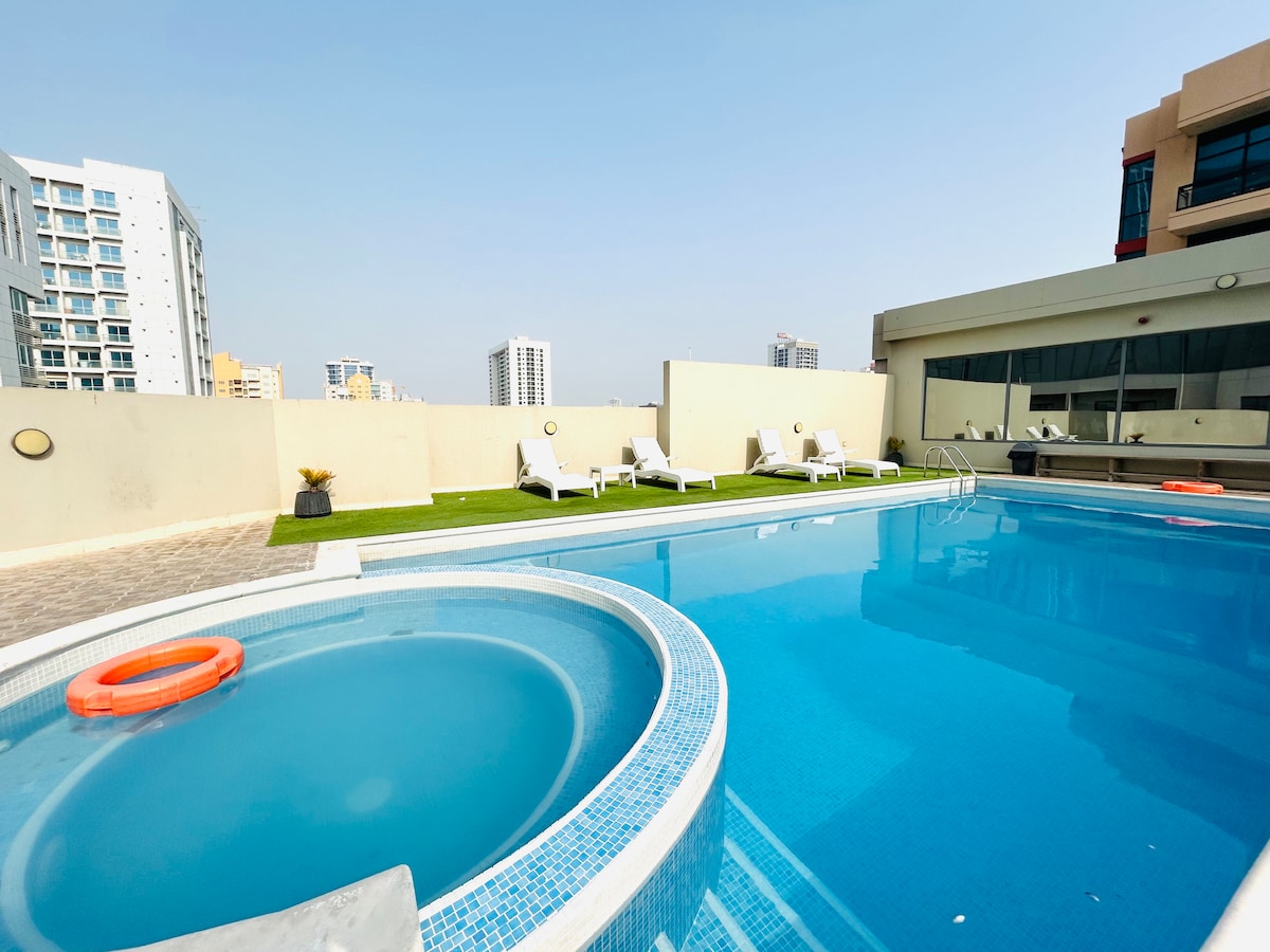 Tervetuloa majoittumaan Juffair Haven Toweriin 🌟 Majoitu Juffairin sydämessä Haven Towerissa, vain muutaman minuutin päässä ostoskeskuksista, ravintoloista ja viihdepaikoista. Huoneisto on täysin varusteltu kaikilla, mitä tarvitset viihtyisään majoittumiseen modernista keittiöstä ja viihtyisästä olohuoneesta nopeaan WiFi-yhteyteen ja raikkaisiin liinavaatteisiin. Olitpa täällä työ- tai vapaa-ajan vuoksi, tämä tila tarjoaa täydellisen yhdistelmän mukavuutta ja viihtyisyyttä. Nauti vilkkaasta Juffairin naapurustosta rentoutuen turvallisessa ja tyylikkäässä tornissa