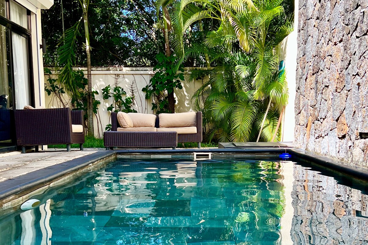 Tämä tyypillinen kreolinen talo sijaitsee Bain Bœufissa vain 200 metrin päässä rannalta, ja siinä yhdistyvät mauritiolainen viehätys ja moderni mukavuus. Nauti yksityisestä uima-altaasta, trooppisesta puutarhasta ja ulkogrillistä sosiaalisten hetkien aikana. Muutaman minuutin päässä Grand Baiestä sijaitseva kohde on todellinen rauhan keidas, joka sopii täydellisesti rentoutumiseen ja elämän suloisuuden löytämiseen Mauritiuksella.