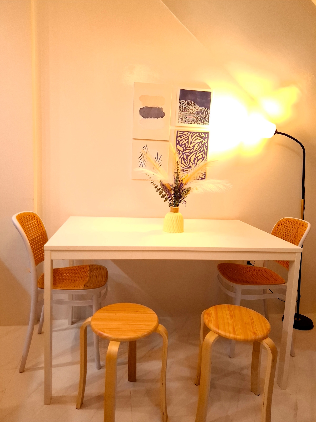 Tervetuloa viehättävään maalaistyyliseen moderniin huoneistoomme, joka sijaitsee Orani Bataanin sydämessä! Tämä tila yhdistää täydellisesti maalaistyylisten elementtien lämmön modernin sisustuksen tyylikkääseen sisustukseen, ja se tarjoaa viihtyisän lomakohteen majoittumisellesi. Kun astut sisään, sinua tervehtii kutsuva oleskelutila, jossa on kierrätetyt kovapuulattiat ja tyylikkäästi suunnitellut kalusteet. Uppoudu pehmeään sohvaan ja rentoudu tutkimusretken jälkeen tai seuraa suosikkiohjelmiasi älytelevisiossa.