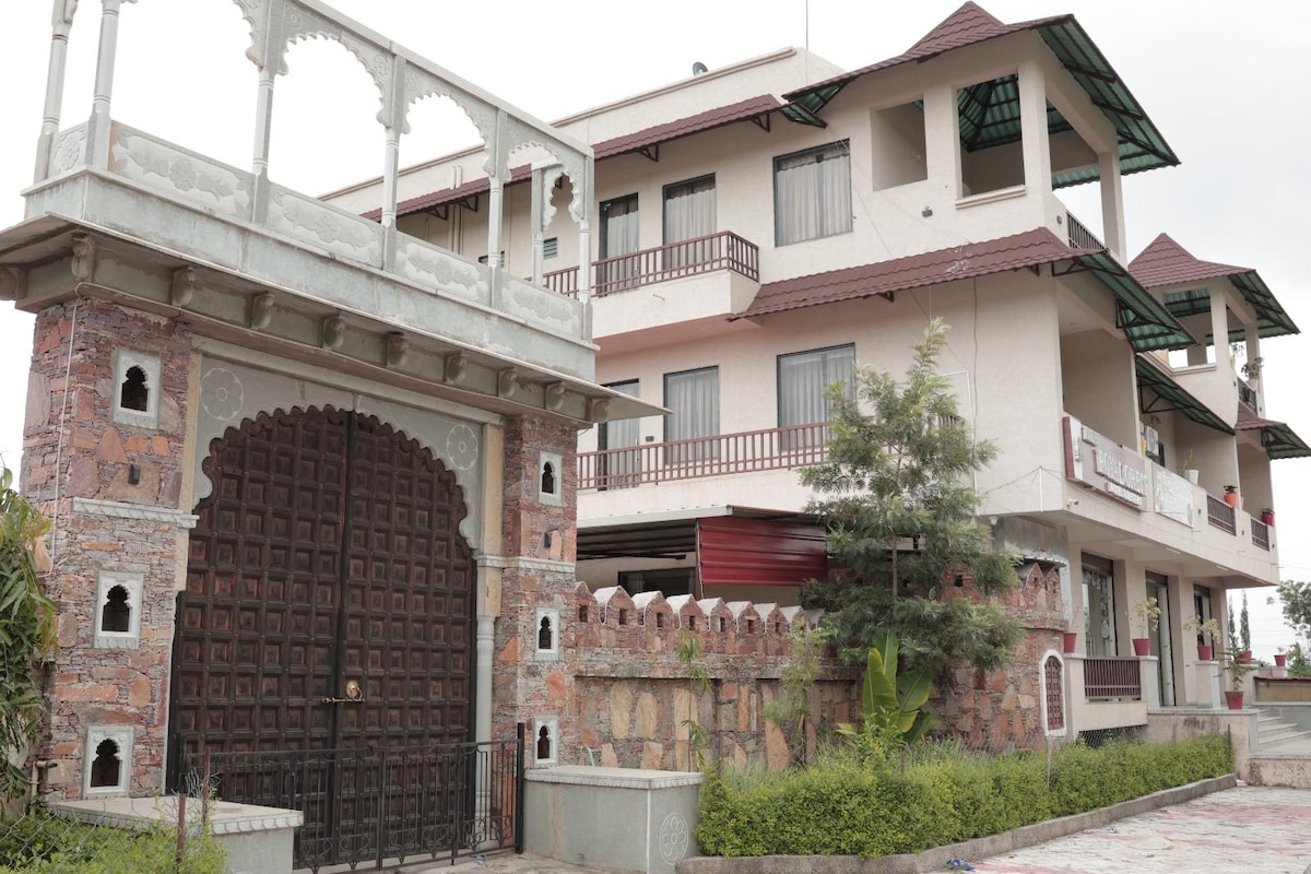 Imagine walking through centuries-old archways, with the soft echo of footsteps on sandstone floors and the fragrance of blooming marigolds nearby. Welcome to Rajmahal Bhindar, a 446-year-old royal residence built in 1578 AD by Maharaj Shakti Singh Ji, brother of Maharana Pratap. This 2-bedroom stay on the ground floor invites you to slow down, soak in regal charm, and reconnect with heritage in the peaceful village of Bhindar, Rajasthan.