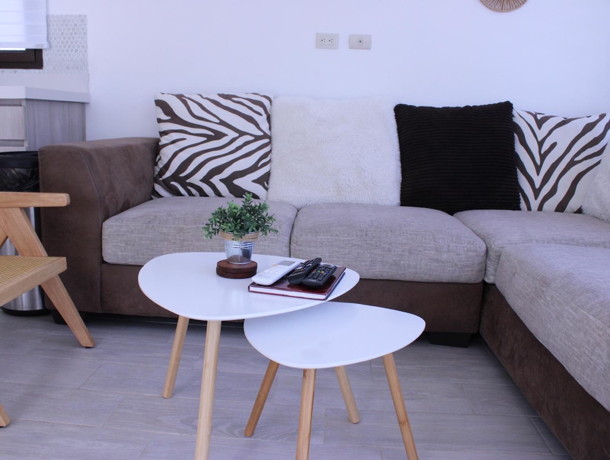 Moderni huvila, jossa on STARLINK Wi-Fi, täydellinen enintään 6 hengen perheelle (mukaan lukien vauvat ja lapset). Ei kolmannen OSAPUOLEN VARAUKSIA. ÄLÄ VARAA, JOS ET MATKUSTA. EI LEMMIKKIELÄIMIÄ. EI POLKUPYÖRIÄ. Täysin aidattu ja turvallinen yhteisö. 1 makuuhuone, jossa on queen-vuode. 1 vierashuone, jossa on 2 parivuodetta, Pesukone/kuivausrumpu, Täysin varustettu keittiö, jossa on ruokapöytä/4 tuolia. Jaettu uima-allas aivan huvilan edessä ja myös hotellissa, jos haluat uida siellä.Grillin ulkopuolella