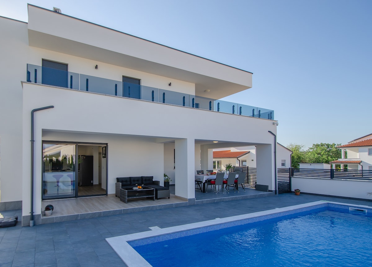 Discover the epitome of privacy, tranquility and relaxation in our new designer Villa Bella Nicole, nestled in the serene village of Bale, 10 km from Rovigno – Istria. Enjoy a private 10-meter heated pool. Nearby are grocery stores, restaurants, and a pharmacy. Pristine beaches are just 9 km away with free Camp Mon Perin guest cards and free parking 50 m from the beach. Free beach entrance.
