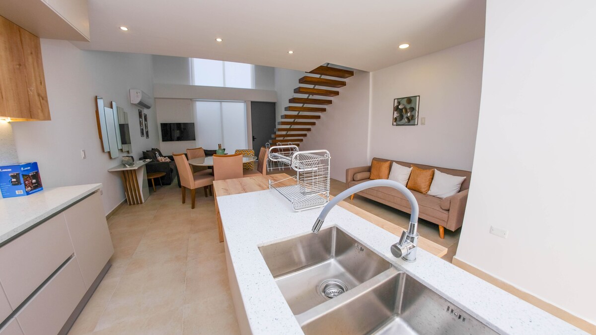 Moderni ja tyylikäs huoneisto ULEAMin kolmannen oven edessä, turvallisessa rakennuksessa ja pääsy ensimmäisen kerroksen kautta. Ihanteellinen pariskunnille, johtajille tai opiskelijoille, varustettu keittiö, työtila ja minimalistinen sisustus. Nauti terassista, jossa on grilli ja kaupunkinäkymä. Meillä on poreallas, mutta sen käyttö riippuu saatavuudesta, joten on tärkeää tarkistaa etukäteen.