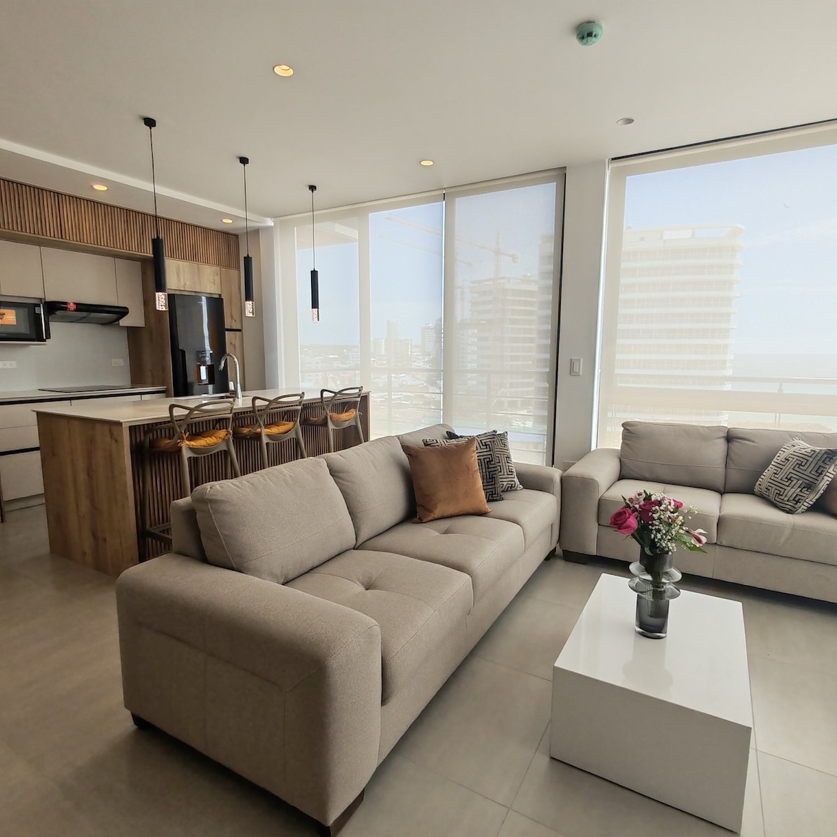 Nauti rannikkomaailmasta huoneistossa, joka sijaitsee vain muutaman askeleen päässä rannalta ja lähellä Mantan kaupungin ostoskeskuksia ja ravintoloita. Huoneisto sijaitsee 3 minuutin päässä Mall del Pacífico -ostoskeskuksesta, lähellä Mantan vaaleanpunaista aluetta ja muutaman askeleen päässä on suora sisäänkäynti El Murciélago -rannalle.