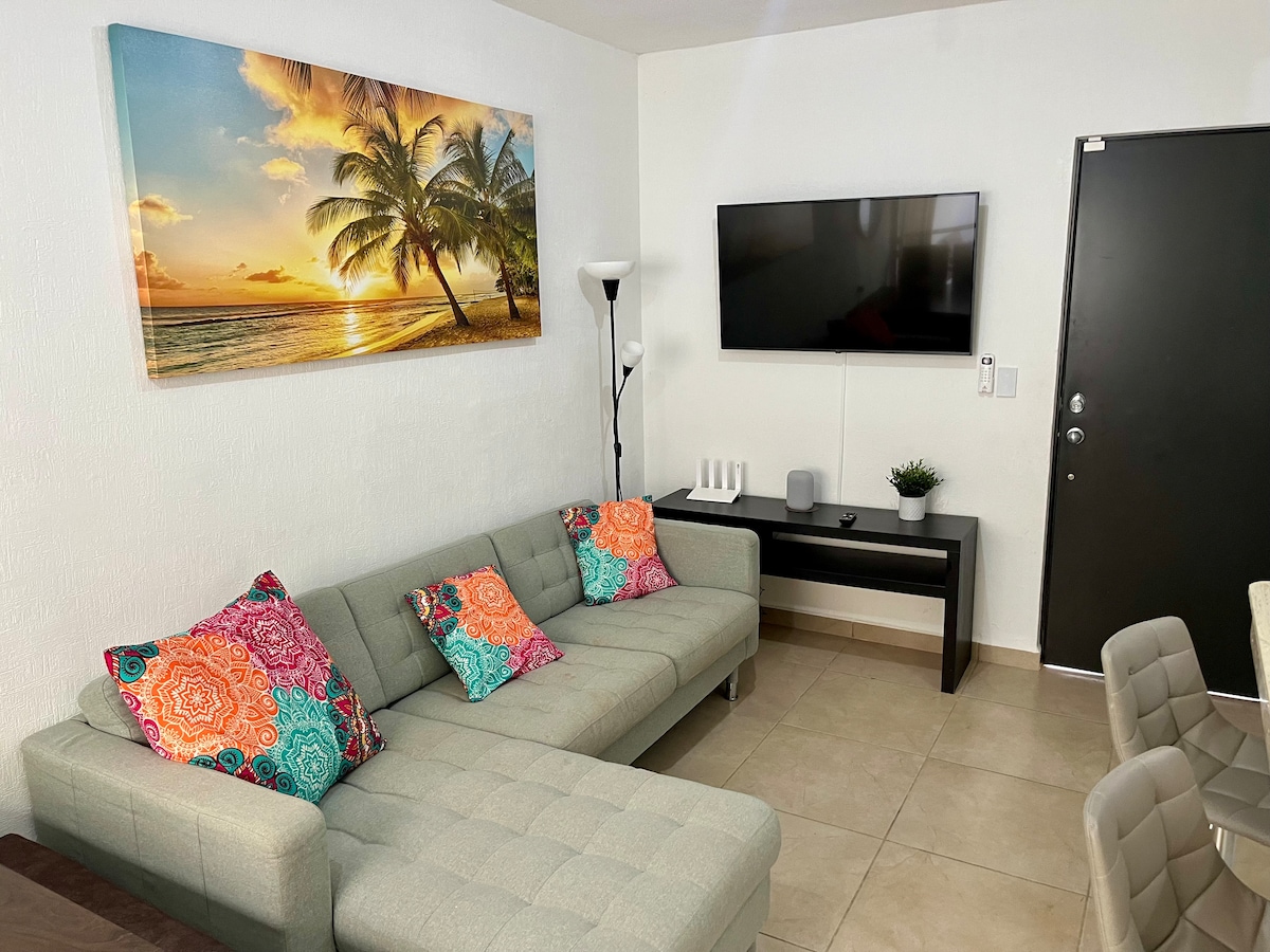 El departamento se encuentra en punta diamante, el mar a unos metros y una ubicación privilegiada, cerca de centros comerciales. OXXO enseguida. se cuenta con elevador. Te invitamos al departamento decorado con buen gusto, limpio, cómodo, ordenado, con todo lo necesario para estar con tu familia. Con balcón privado. Es un excelente lugar para descansar, divertirse y realizar home office El club de playa al cruce de calle, también se cuenta con jacuzzi, spa, estacionamiento, 2 albercas etc