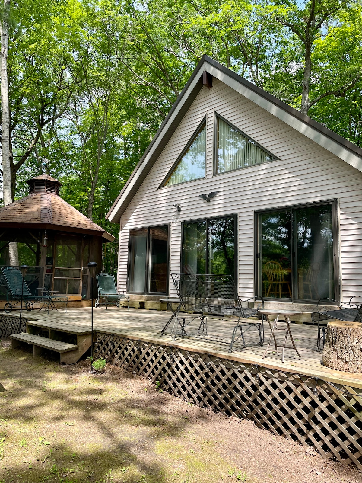 Viihtyisä A-mökki metsässä 5 hehtaarin yksityisalueella Hay-joen varrella. Syvän syrjäinen retriitti, joka on suunniteltu hidastamaan, yhdistämään ja löytämään inspiraatiota, 90 minuutin ajomatkan päässä Twin Citiesistä. Ympäristö tarjoaa harvinaista yksityisyyttä ja rauhallisuutta, jota on vaikea löytää. Vietä päiviäsi meloen kallioiden alla, lämmitellen puusaunassa, rentoutuen kirjan äärellä takan äärellä, katsellen villieläimiä ja kokien rauhallisen, virkistävän pakopaikan kaikkina vuodenaikoina.