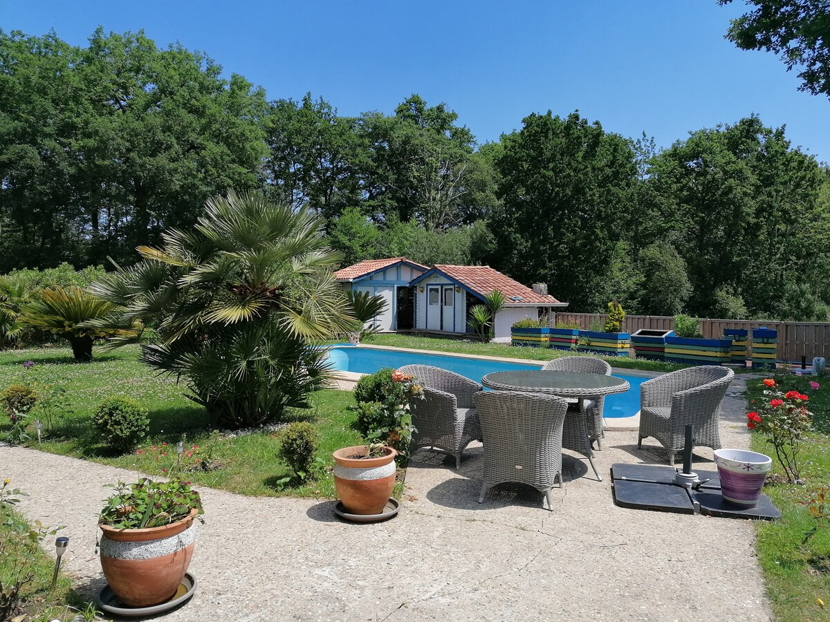 Vuokraamme tämän 40 m²:n studion, joka on itsenäinen osa taloamme ja johon pääsee pohjakerroksesta. Siihen kuuluu olohuone, nukkumisalue, erillinen kylpyhuone ja yksityinen ulkoterassi. Pääsy uima-altaalle pyynnöstä toukokuusta syyskuuhun. Se sijaitsee rauhallisessa ja maalaismaisessa ympäristössä, vain 8 minuutin ajomatkan päässä Biarritzin rautatieasemalta, 12 minuutin päässä rannalta, 15 minuutin päässä Bayonnesta ja 35 minuutin päässä San Sebastianista. Se on ihanteellinen paikka alueen tutkimiseen. Vauvansänky saatavilla pyynnöstä.