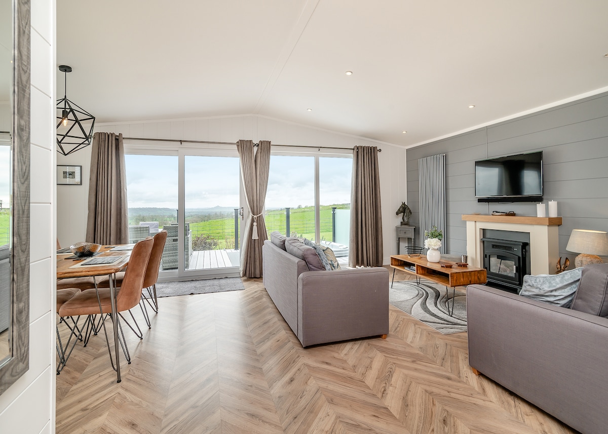 With a sunken outdoor hot tub on the large decked area, this contemporary and spacious lodge offers guests the choice of two bedrooms.