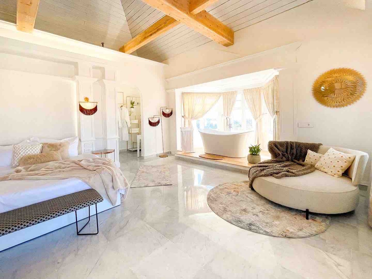 Ylellinen sviitti, jossa on kylpyamme ja uima-allas