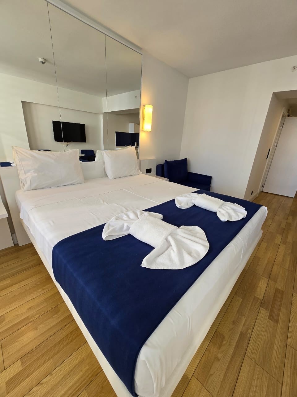 Koe ylellinen mukavuus tilavassa Executive-sviitissämme, joka sijaitsee ihanteellisesti vain 250 metrin päässä rannalta. Rentoudu ylellisessä king-size-vuoteessa ja nauti moderneista yksityiskohdista, kuten älytelevisiosta, nopeasta wifi-yhteydestä, omasta kylpyhuoneesta ja parvekkeesta. Paranna majoittumistasi premium-tiloilla, kuten kausiluonteisella uima-altaalla, kylpylällä, kuntosalilla ja saunalla. Nämä ovat saatavilla osana valittuja paketteja tai lisämaksusta. Ilmainen tee/kahvi ja välttämättömyystarvikkeet tarjoavat hienostuneen ja rentouttavan majoittumisen.