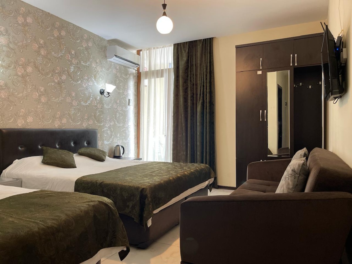 Tervetuloa tyylikkääseen boutique-hotelliimme Batumin sydämessä! Hotellimme sijaitsee rauhallisella Khakhuli-kadulla, vain 2–3 kilometrin päässä rannalta, ja siinä yhdistyvät mukavuus, moderni suunnittelu ja lämmin georgialainen vieraanvaraisuus. Jokainen huone on huolella kalustettu tarjoamaan rentouttavaa lomaa. Vieraat voivat nauttia pienestä ulkouima-altaasta, joka on täydellinen rentoutumiseen kaupungin tutkimisen jälkeen. Olitpa täällä lomalla tai liikematkalla, rakastat rauhallista tunnelmaa, ystävällistä palvelua