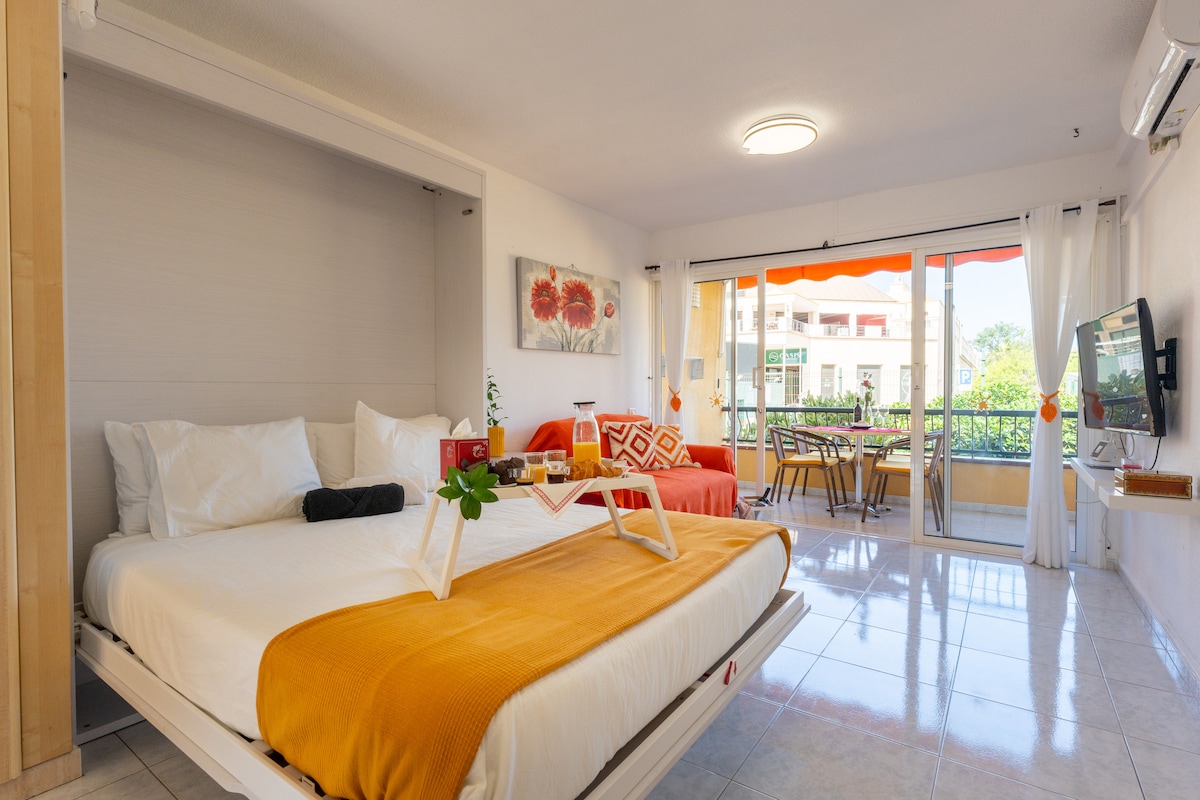 Koe mukavuus Mint Studio -huoneistossamme (avoin pohjaratkaisu), joka sijaitsee suositussa Castle Harbour -kompleksissa Los Cristianosissa. ★"Huoneisto on aivan kuten kuvissa, erittäin puhdas ja tyylikkäästi sisustettu." 🌞 Miksi rakastat studioamme: ✅ King-vuode – Nuku mukavasti ✅ Aurinkoinen terassi – Rentoudu auringossa koko päivän ✅ 50 tuuman litteä televisio – Rentoudu ohjelmiesi parissa ✅ Kattotuuletin – mukavuutta lämpiminä päivinä ✅ Lämmitetty uima-allas – ympäri vuoden ✅ Pysäköinti – Ilmainen rakennuksessa tai läheisellä kadulla ✅ Cook Zone – kompakti keittiö