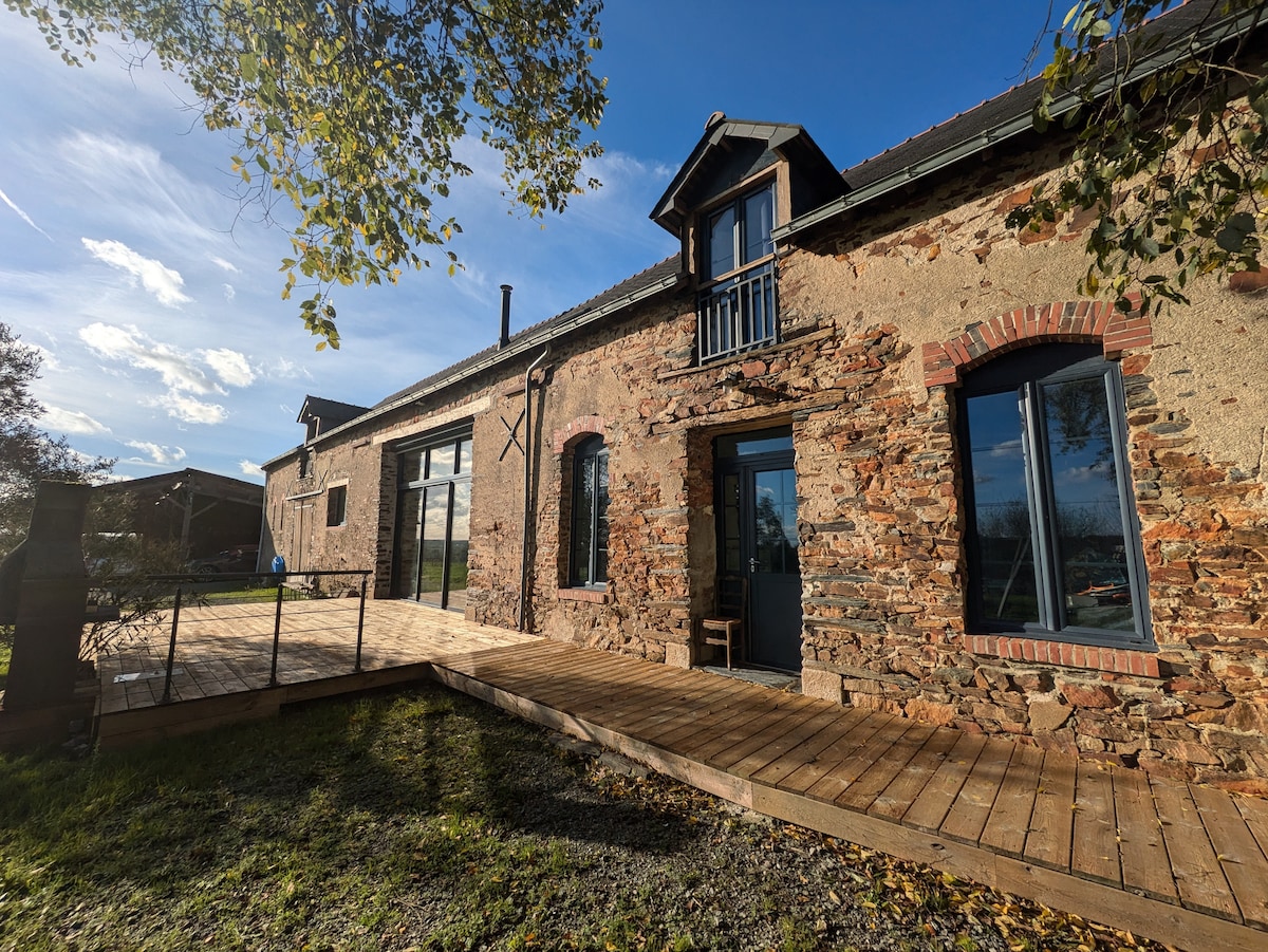 En famille ou entre amis, venez vous détendre dans cette longère de plein pieds de 90m2 dans un ancien corps de ferme, au milieu des champs. Cette maison conviviale et équipée vous accueillera avec ses 2 chambres + canapé convertible de qualité, ses espaces extérieurs privatifs clôturés, transats, barbecue à charbon, poêle à bois, sa box internet et TV. Vous serez idéalement situé à 17 min d'Angers, 45 min de Nantes, 2km des commerces, 4km d'un étang de baignade (surveillée en été).