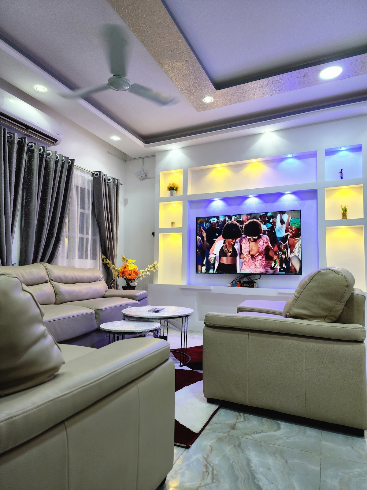 Huoneisto sijaitsee lähellä Carrefour LE BELIERiä, 5 minuutin päässä Jacquesin alueelta tai uuden Cinema CONCORDE Wayn kautta Sacrament-kirkolle, 10 minuutin kävelymatkan päässä rannalta "du Bélier", 15 minuutin ajomatkan päässä suuresta JEREVAN-OSTOSKESKUKSESTA ja lentokentältä ja 5 minuutin päässä Super U Akpakpasta. 2 ilmastoitua ja tuuletettua makuuhuonetta ja olohuone ainutlaatuinen wc (per huone) Vierailijoiden wc P.S.: Sähkö on vuokralaisen vastuulla korttimittarin kautta. (Tarjoa noin 50 € 30 päivän ajan käytöstä...ilmastointi tai ei)