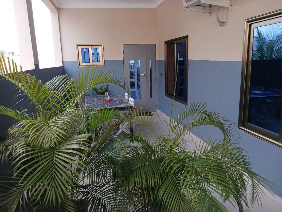 Mukana terassi sijaitsee Cotonoun kaupungin keskustassa. Saat ilmaisen yksityisen pysäköinnin ja wifin. Tämä tilava ja rauhallinen kohde. Jos kohteessa on sähkökatkos, meillä on automaattinen generaattori viestinä. Siivouspalvelu on ilmainen.