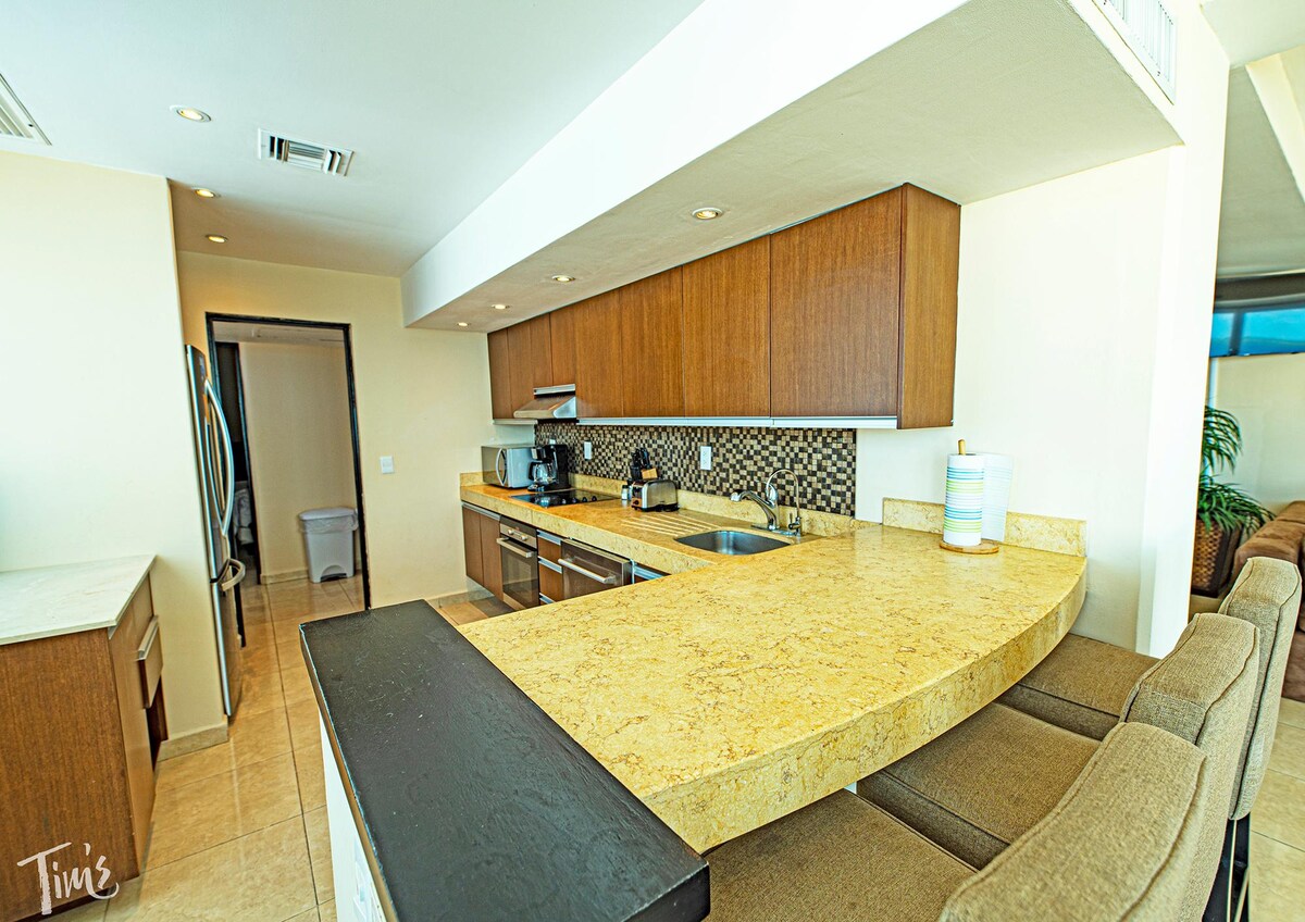 Tarjoamme ylellistä asumista rannalla parhaalla paikalla. Kattohuoneistossamme on 2 makuuhuonetta, joissa on 2 1/2 kylpyhuonetta ja josta on laajat näkymät merelle ja rannalle ja joka sijaitsee kauniissa lomakeskuksessa. Ui baariin yhdessä uima-altaista ja hanki hieronta uima-altaalla. Pyydä paikan päällä lainelautailutuntia, ennen kuin menet muutaman askeleen päässä hiekasta. Syö sitten paikan päällä olevassa ravintolassa tai yksityisellä parvekkeella, jolta on näkymä rannalle. Huoneistomme pääsee katettujen ulkoilmakäytävien kautta, jotka ovat Covid-turvallisia