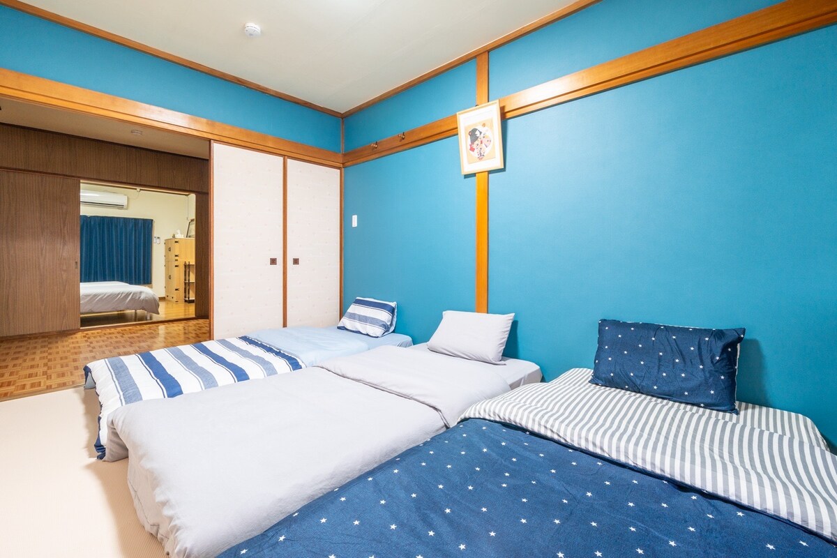 Tähtien ja maan teehuone, lähin asema on Tenshachaya. 4 makuuhuonetta, 1 olohuone, 1 teehuone, 2 wc:tä, 2 kylpyhuonetta, japanilainen huvila, jossa on etu- ja takapiha, 8 minuutin kävelymatka raitiovaunuasemalle ja suureen supermarkettiin. Lentoaseman pikarata Nankai-linja on erittäin kätevä suoraan lentokentälle. 6 minuutin metromatka suoraan Nambaan (3 asemaa). Dotonbori, Shinsaibashi, Namba. 1. kerroksessa on kaksi makuuhuonetta, ruokailuhuone ja keittiö, kaksi erillistä kylpyhuonetta ja wc. 2. kerroksessa on kaksi makuuhuonetta, teehuone (joka voidaan muuttaa makuuhuoneeksi) ja wc. Siellä on neljä vuodetta, joten ystävät, jotka haluavat nukkua sängyssä, voivat olla 2. kerroksessa. Mukavin majoitus on 8 hengelle, mutta jos on mahdollista, niin enintään 10 hengelle, erinomainen perheille. Kaksi kylpyhuonetta ja kaksi wc:tä eivät aiheuta ruuhkaa! Perinteinen japanilainen talo, puhdas japanilainen tyyli edessä ja takana, ympäristö on erittäin turvallinen ja hiljainen, voit kokea japanilaista elämää mukavasti ja taloudellisesti. Lähistöllä on ravintoloita, 24 tunnin päivystävä lähikauppa ja suuri supermarket. Kohteen tiedot @Varusteet@ <pesu> Pyyhe, kylpypyyhe (ei varalla) Suihkugeeli, shampoo, hoitoaine (POLA) Hammasharja, sheiveri, kampa, Hiustenkuivaaja Kylpyhuone, WC, kuiva ja märkä erillään <Keittiö> Jääkaappi Mikroaaltouuni Pieni uuni Vedenkeitin I H liesi Keittoastiat (pyydämme sinua pesemään ne) <Muut> Langaton WiFi, TV Pyykinpesukone, kuivausrumpu, pyykkinaru (pyyhkeet ja kylpypyyhkeet voidaan pestä) Ilmastointi Pölynimuri, ilmanraikastin ja ilmankostutin