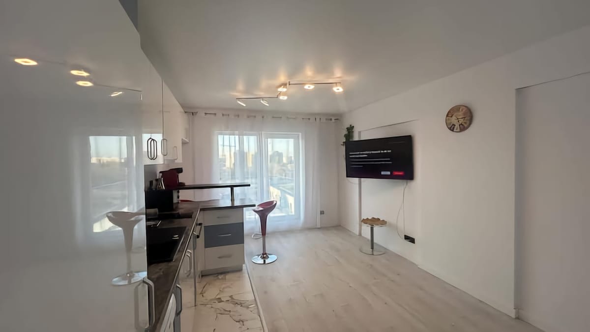 1 makuuhuoneen huoneisto hyvällä paikalla, jossa on parivuode, varusteltu keittiö, henkilökohtainen kylpyhuone, työpöytä ja viihtyisä parveke, josta on upea näkymä kadulle - 8. kerros. WiFi - Digi Net Fiber Link 500, kaapeli-TV, ilmastointi, hiustenkuivaaja Lähellä Sun Plaza Mall, Piata Sudului -metroasema, Bazar Big Berceni, Piata Sudului -markkina 8 minuuttia metrolla vanhaan kaupunkiin