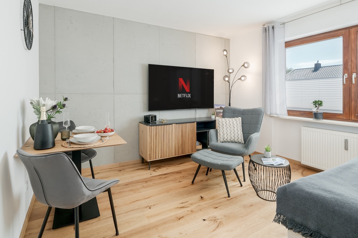 Nauti rentouttä ajasta rakastavasti sisustetetyissä LELA-huoneistoissamme, jotka on suunniteltu käyttäen paljon puuta ja lämpöä. Kolme tyylikästä makuuhuonetta majoittavat jopa 6 aikuista, ja 7. ja kahdeksas vieras voi nukkua mukavalla vuodesohvalla. Huoneisto sijaitsee vain noin 500 metrin päässä rautatieasemalta, joten voit matkustaa mukavasti junalla. Vaihtoehtoisesti käytettävissä on kaksi pysäköintipaikkaa. Tärkeät päivittäistavarakaupat ovat kävelyetäisyydellä.