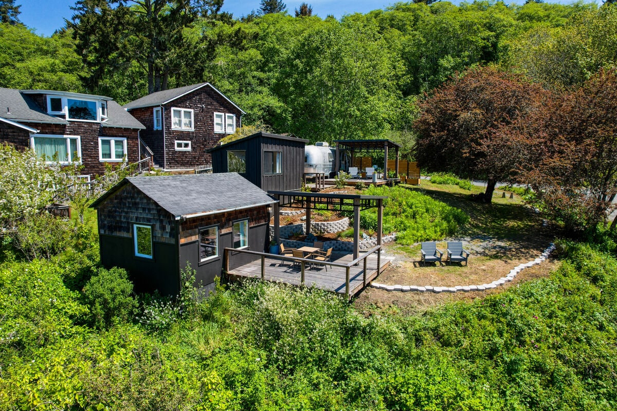Tervetuloa vaatimattomaan kotiisi Humboldtin rannikolle. Herää kahvin tuoksuun kuistikeinussa, josta on esteetön näkymä Redwoodin kansallispuistoon ja Redwood Creekiin. Kävele sitten, ratsasta tai aja hirvilauman ohi vanhoille punapuumetsille tai seuraa puroa mahtavalle Tyynellemerelle, jossa on kilometrejä tasaista rantaa. Vietä enemmän aikaa tutustuen jättiläismäisiin punapuihin, henkeäsalpaaviin rantoihin ja ilmiömäiseen kalastukseen. Kotiin palattuasi sinua odottavat cornhole-peli, pöytäjalkapallo, s'mores-herkkuja, roihuava takkatuli, elokuva ja poreamme tähtitaivaan alla!