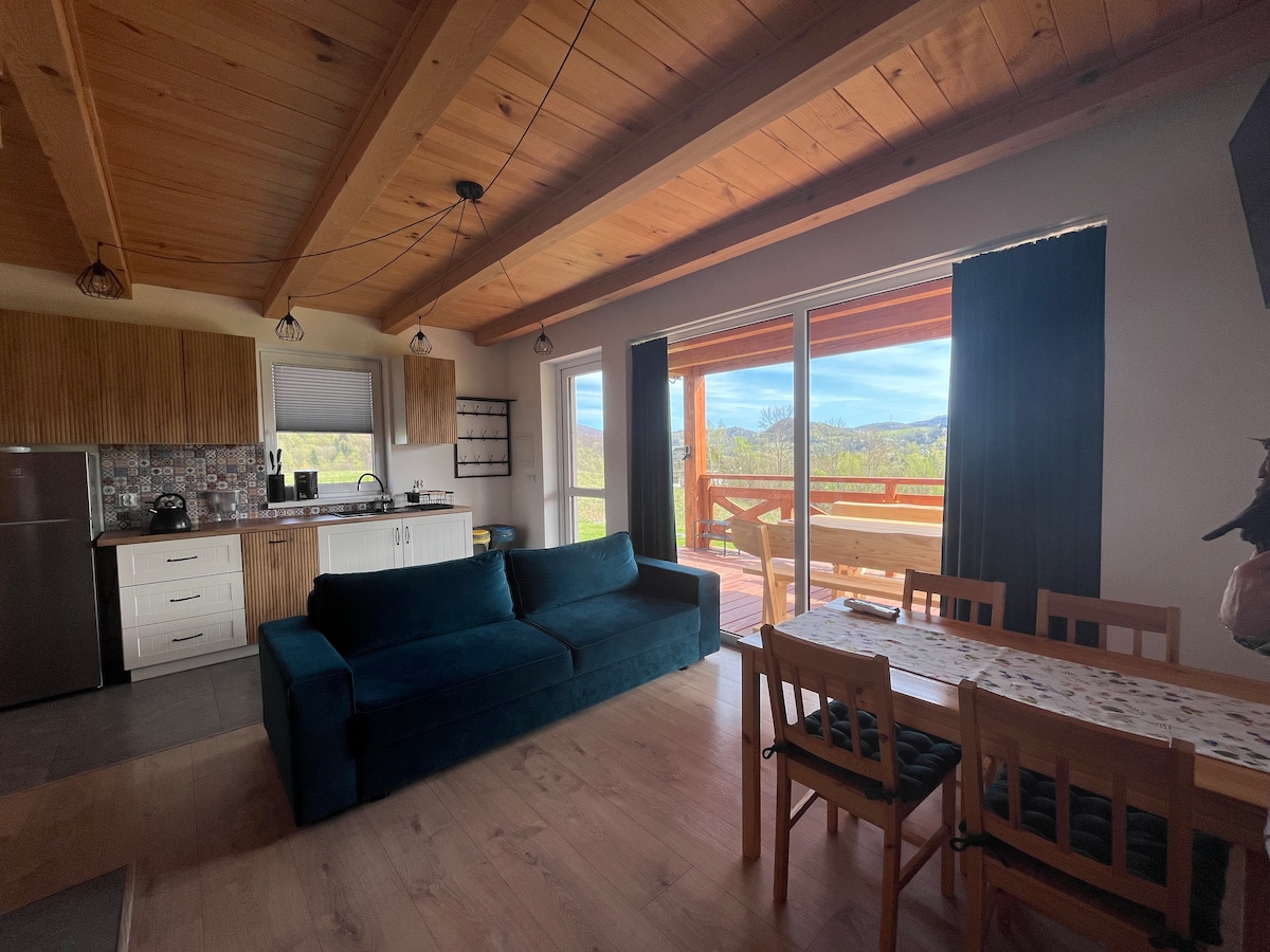 Mökki Bieszczady-vuoristossa näköalalla, ilmastointi, ympäri vuoden