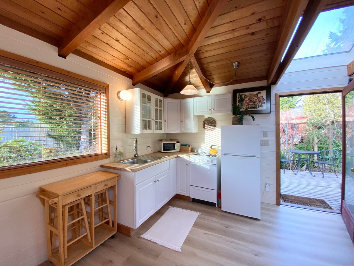 Viehättävä mökkimme, josta on kauniit näkymät Salishin merelle, on täydellinen yksin lomailevalle tai pariskunnille. Ravintolat, kaupat ja rantapuisto ovat vain lyhyen kävelymatkan päässä, joten voit nauttia kaupungin mukavuuksista ja herätä joka aamu auringonnousuun terassilta tai mukavasta queen-size-vuoteesta tässä täydellisesti suunnitellussa yksiössä. Studio-mökkimme ominaisuudet: ☀️ täysin uudet kodinkoneet ☀️ kvarstityötasot ☀️ kylpyhuone, jossa on mukautetut laatat ☀️ Ylelliset liinavaatteet ja mukavuudet Saarilomasi odottaa sinua ✨