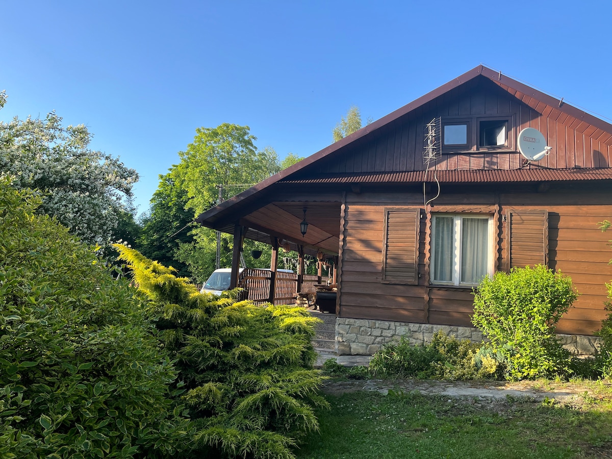 Hirsitalo, josta on kaunis näköala Beskidille. Kaksi makuuhuonetta, joista toisessa on parveke ja kylpyhuone. Suunniteltu 6 hengelle, lisäksi 2 henkilöä( voi nukkua olohuoneessa). Sisäänrakennettu ja katettu vaja, jossa on ruokapöydät. Tulikuoppa, jossa on grilli. Poreallas ulkoterassilla ja saunassa (lisämaksu) Puulämmitteinen venäläinen paali (vaihtoehto) . 20 minuuttia kolmeen hissiin, kasino 20 minuuttia Dobczycen linnalle. 5 minuuttia sisätilojen jäähallille ja uimarannoille.
