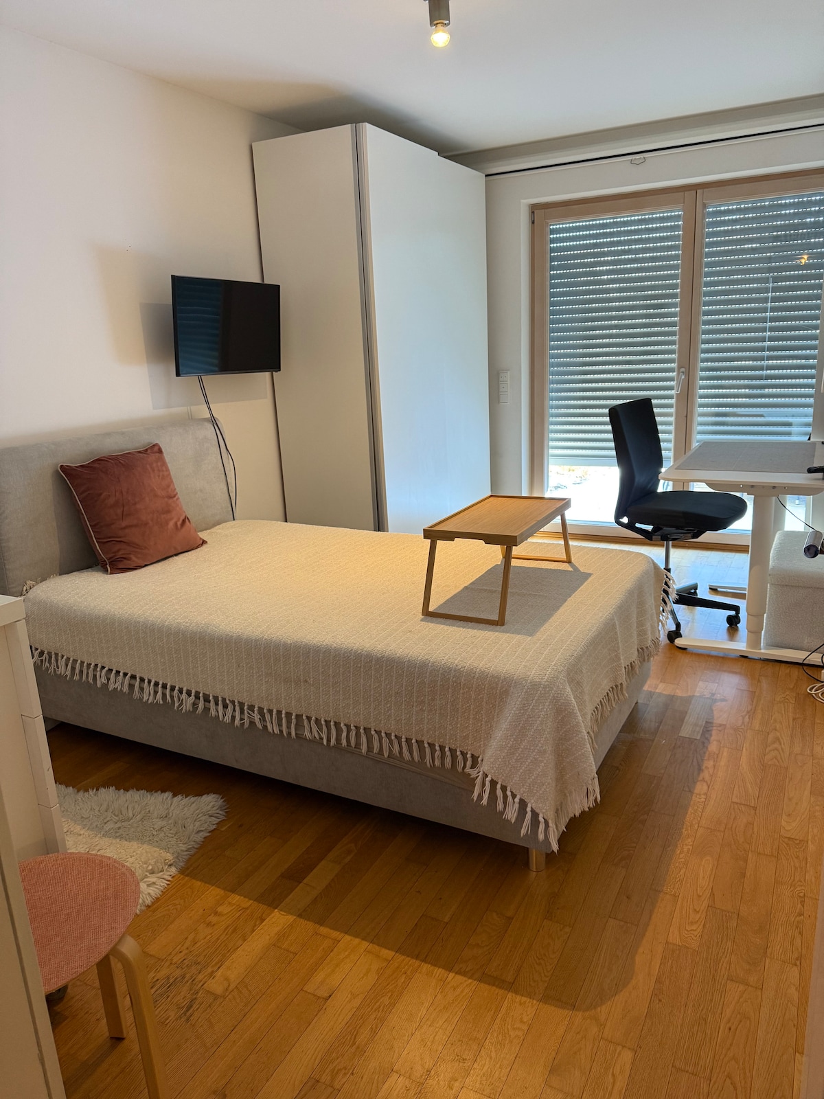 Tässä äskettäin remontoidussa huoneessa Freisingin kaupungissa, lähellä Münchenin lentokenttää ja 25 minuutin päässä Münchenistä, on kaikki, mitä tarvitset asumiseen, työskentelyyn ja leikkimiseen. Hanki käytännölliset asiat, kuten pesukone, nopea WiFi, ympärivuorokautinen tuki, säännöllinen ammattimainen siivous ja hauskoja tavaroita, kuten älytelevisio. Pysy mukavasti niin kauan kuin haluat – päiviä, viikkoja tai kuukausia.