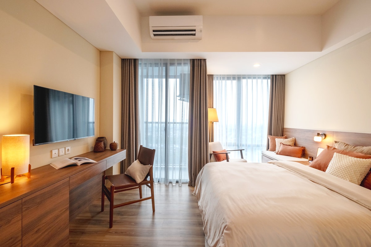 Koe täydellinen yhdistelmä mukavuutta ja kätevyyttä Ayoma Apartmentissa tässä täysin kalustetussa studioyksikössä. Varustettu 65-tuumaisella 4K-televisiolla viihdettä varten, ilmainen Netflix, vesiautomaatti, viihtyisä sohva, ilmastointi, vedenlämmitin, ilmainen wifi ja ilmaiset välipalat, uima-allas, kuntosali ja sauna. Sijainnin kohokohdat: • AEON Mall BSD (15 minuuttia) • ICE BSD (15 minuuttia) • Poistu tietulli Serpongista (5 minuuttia) Tämä studio on täydellinen sekä lyhyisiin että pitkiin majoittumisiin, ja se on ihanteellinen urbaani lomakohteesi.