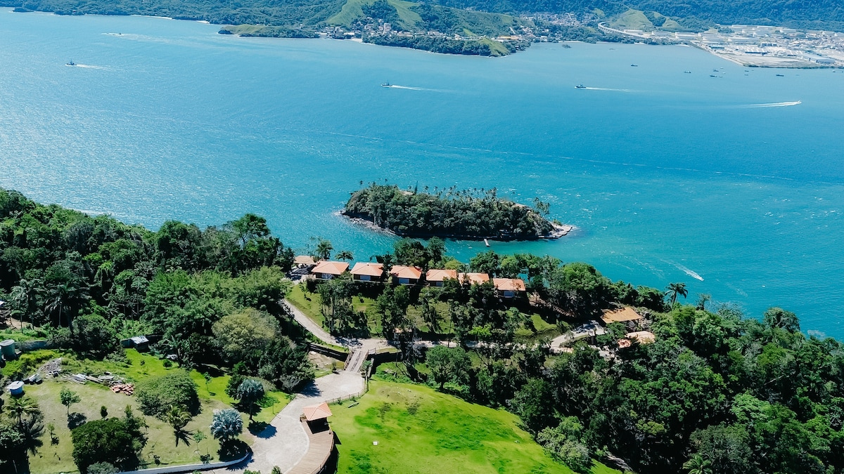 Taianomainen talo Bonetessa. Merinäkymällä Ilhabelassa