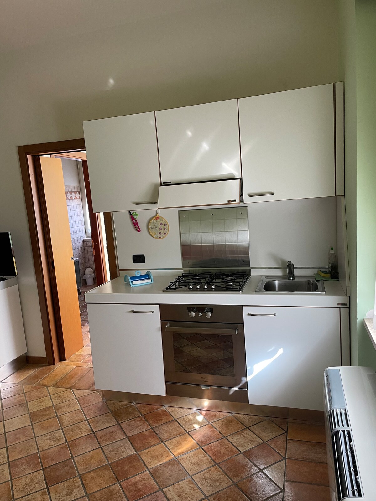 L’ Arcobaleno on mukava huoneisto, jossa on tilava ja toimiva keittiö. Siinä on kaksi huonetta, joissa molemmissa on oma kylpyhuone, yksi parivuode ja toisessa parivuode sekä 1 yhden hengen vuode, joten siihen mahtuu jopa 5 henkilöä. Siinä on kaksi suurta varjostettua ja kalustettua ulkotilaa, joista voit nähdä meren ja auringonlaskun, oma grilli, jossa on pesuallas ja kuuma ulkosuihku.