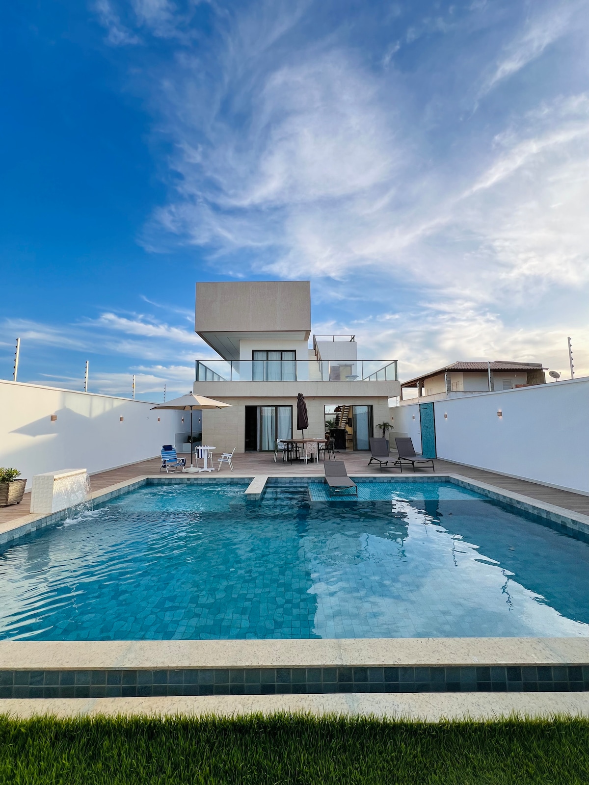 Esta acomodação elegante é perfeita para viagens em grupo. Temos comodidade para que nossos visitantes se sintam a vontade, com uma area de lazer completa, com Piscina Sinuca e Area gourmet separada da casa. Ficamos 300 metros da praia. Fica 10 minutos da Lagoa dos Tambaqui (6,9 KM) 11 minutos da praia do Saco (10,7 KM) 19 minutos da Praia da Cauera (18,1 KM