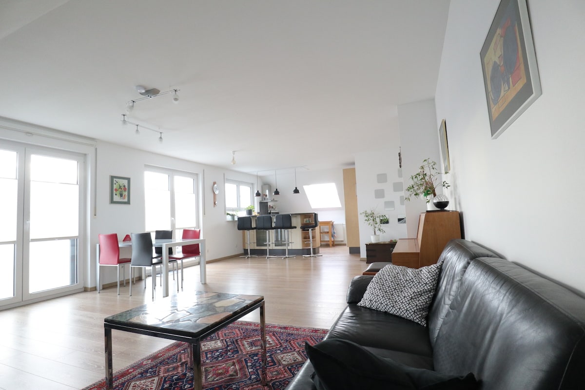 Paljaat tiilit, parketti, parveke ja sadesuihku ovat vain muutamia kohokohtia. Makuuhuoneessa on mukava vuode 180x200, vaatekaappi ja sähköisesti korkeussäädettävä työpöytä. 2. nukkumapaikka on olohuoneessa mukavalla Bonell-jousella varustetulla vuodesohvalla 160x200. Amerikkalainen keittiö on varustettu astianpesukoneella. Pysäköinti: ilmainen kadulla. Erittäin hyvät yhteydet: julkinen liikenneverkko ja saavutettavuus rautatieasemalta, lentokentältä, moottoritieltä, BMW, Porsche, DHL, WiFi