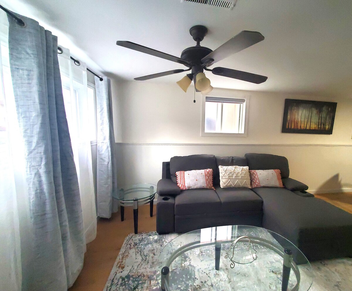 Lähde Montrealiin tyylikkääseen sviittiin! Mitään kuvissa näkyvistä ei jaeta muiden kanssa 🔐 + oma sisäänkäynti🚪 Rentoudu tilavassa olohuoneessa älykkään ison näytön ääressä 📺 Nuku mukavassa queen-vuoteessa 🛏️ Kaikki sijaitsee kellarissa hiljaisella kadulla 💤 Autolla 🚙 15 minuuttia Montréalin keskustaan 6 minuuttia REM Panama -asemalle ja Mall Champlainiin 5 minuuttia DIX30-ostoskeskukseen Jalkaisin🚶🏻🚶🏻♀️ 12 minuuttia ruokakauppaan Ilmainen pysäköinti kadulla 🅿️ Pesukone/kuivain sisältyy 🧺 Monipuoliset 🍽️ ruokapaikat minuuttien päässä. Varaa lomakohteesi tänään :)