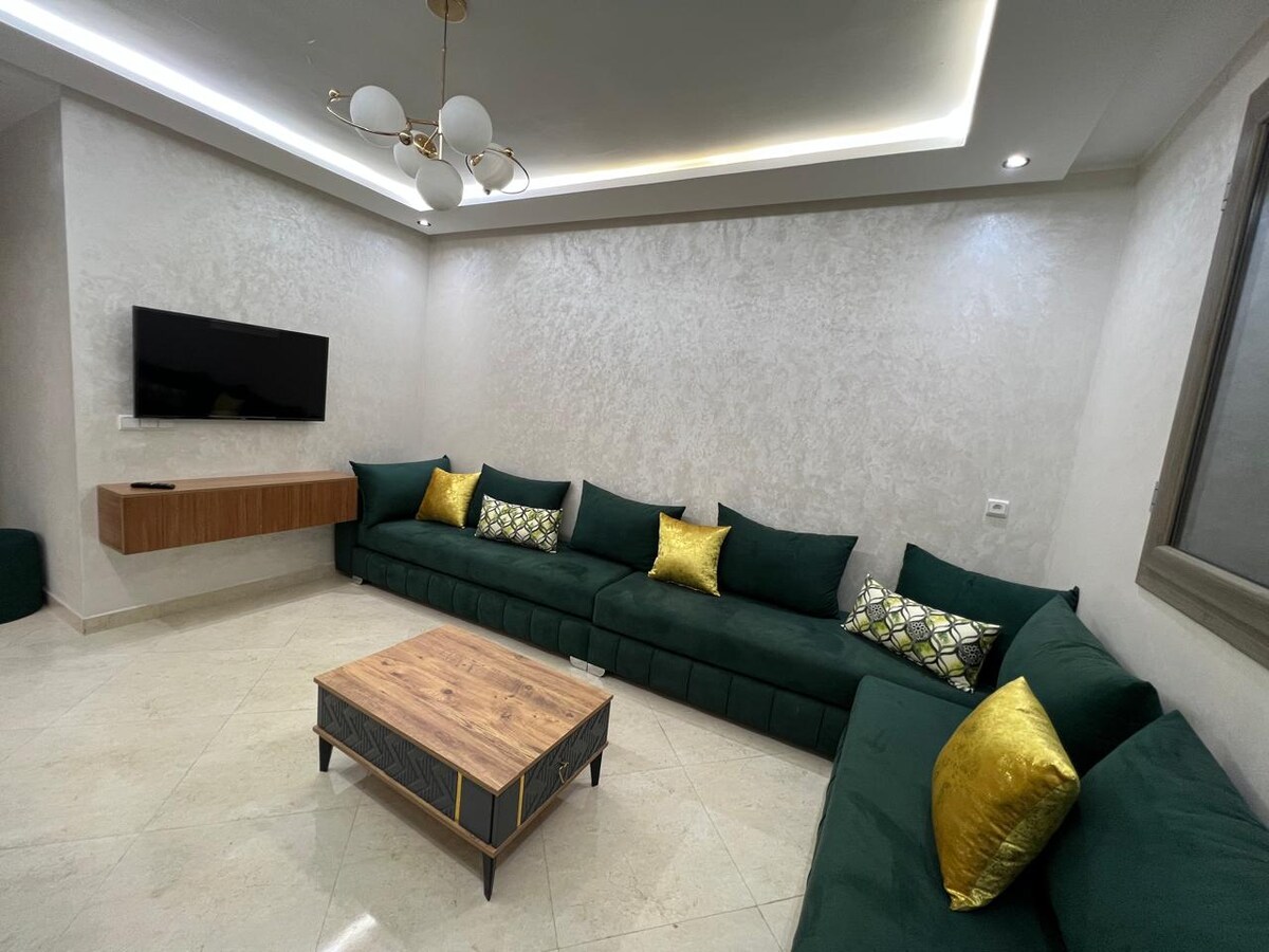 Tervetuloa moderniin ja mukavaan huoneistoon, jossa voit majoittua mukavasti Khouribgassa. Se on täysin varustettu ja sisältää valoisan olohuoneen, toimivan keittiön, kaksi tilavaa makuuhuonetta ja kaksi modernia kylpyhuonetta. Nautit Wi-Fi-yhteydestä, kahdesta älytaulutelevisiosta ja kaikista olennaisista mukavuuksista. Asunnossa on ilmainen pysäköinti, joka on suojattu valvontakameroilla, jotta voit olla täysin huoletta.