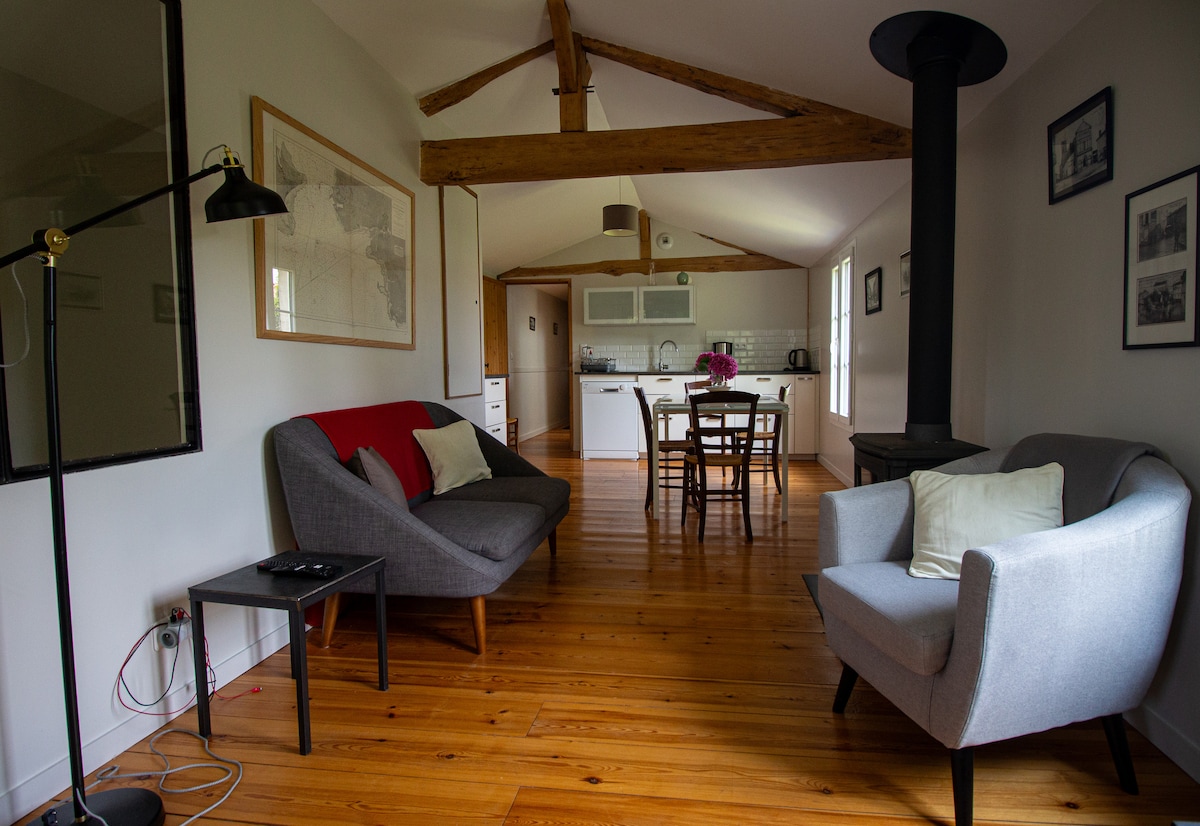 Tarjoamme tämän vanhan, kunnostetun myllyn Jarnacin keskustassa, Charenten varrella, rauhallisessa paikassa, läpi kulkevan ja erittäin valoisan; huolellisesti sisustetun, ainutlaatuiset näkymät vedelle ja linnan puistoon, erityisesti kauniilta terassilta ja parvekkeelta. Kuten laivalla, talo tarjoaa kaiken hyödyllisen mukavuuden, aivan lähellä kaikkia kaupungin keskustan mukavuuksia ja kauppoja. Asunto sijaitsee 10 minuutin kävelymatkan päässä rautatieasemalta. Ihanteellinen rentouttavaan lomaan tai työmatkalle. Wifi käytettävissä rauhalliseen työskentelyyn.