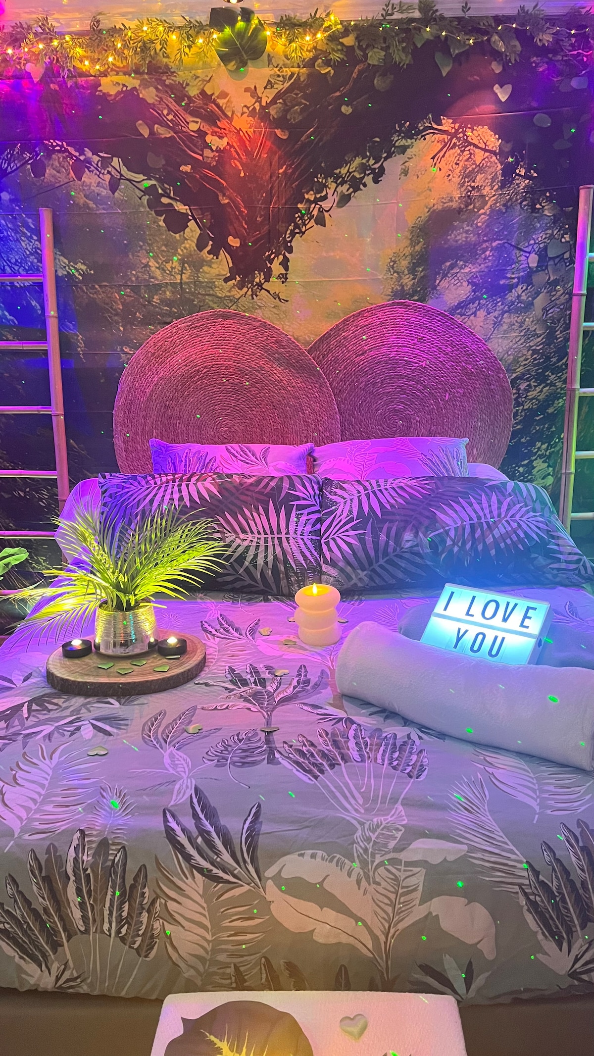 ✨ Découvrez le Mirage Tropical , une parenthèse raffinée au bord de la Loire 🌴. Profitez d’un jacuzzi privatif, d’une terrasse élégante et d’un espace jungle dépaysant pour vous évader. Amusez-vous autour du jeu de fléchettes, partagez un apéro exotique ou détendez-vous dans une atmosphère unique. Le soir venu, la chambre s’illumine de couleurs envoûtantes pour un moment chic et romantique 💖. Ici, chaque détail sublime votre séjour pour créer des souvenirs mémorables.🌴❤️❤️💕💕💕👄🫂❤️