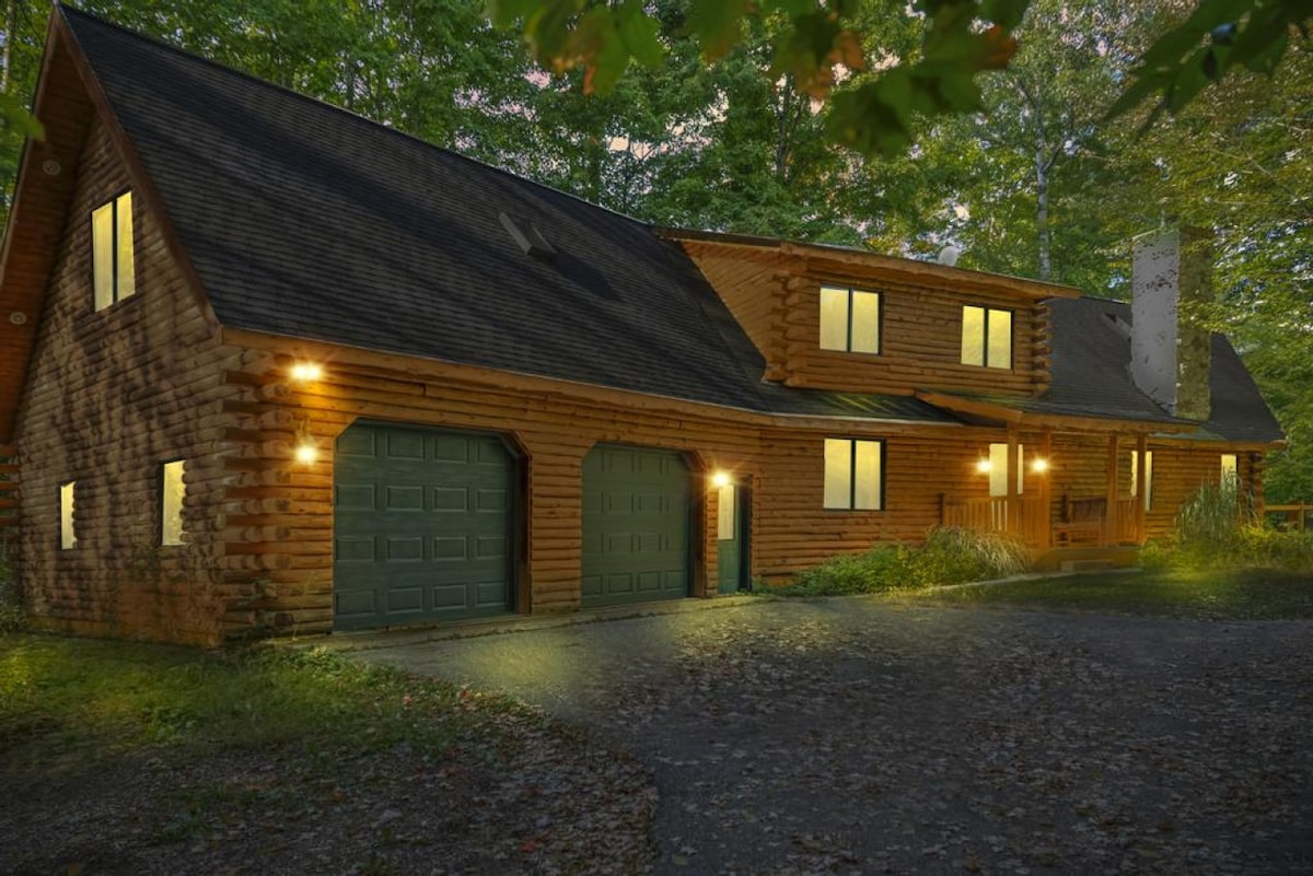 Hauskaa, rauhallista, virkistävää, upeat näkymät, poikkeuksellinen pääsy maastoajopolkuille ja valtion metsästysmaille. 15 minuuttia Gaylordista, Tree Topsista ja Otsego Ski -rinteistä. 3 000 neliömetrin ainutlaatuisen yksityiskohtainen hirsi- ja kivimökki, joka on upotettu 10 hehtaarin kauneuteen. Takapiha on tilava ja täysin eristetty, ja siellä on 7 hengen 100 suihkullinen poreallas ja leveitä polkuja koko 9 eekkerin taka-alueella. 20 vuodetta: 1 king-size-vuode, 2 queen-size-vuodetta, 2 queen-size-vuoteen muotoista vuodesohvaa ja 15 ilmapatjaa. (Häät ja perhetapaamiset tervetulleita, mutta ei juhlia!)
