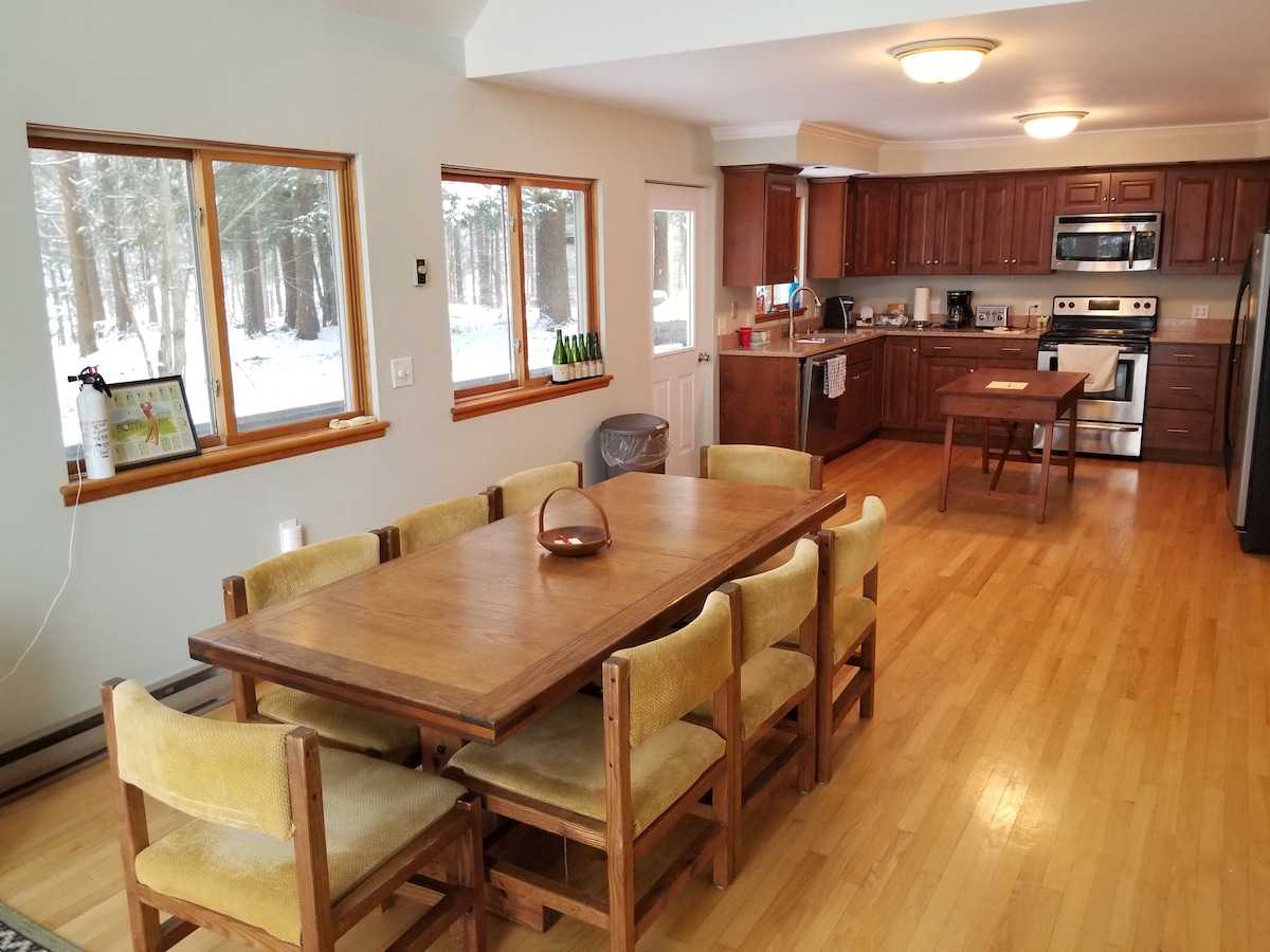 This beautiful open floor plan is centered around the propane fireplace. Come sit on the wrap around porch and listen to the turkeys gobble. The three acre parcel sits on the snowmobile and atv trails of Lewis County. Enjoy walking to center square Brantingham and having dinner or a drink . This setting is ideal for a getaway. Walking trails , golf course and biking. Old forge is less than a hour away. Come stay with us, you won’t regret it!