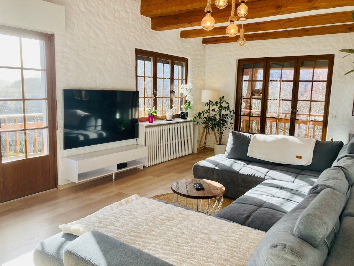 Vihreässä ympäristössä, 12 km: n päässä viinireitiltä, 18 km: n päässä Lac Blancin laskettelurinteistä ja 20 km: n päässä Colmarista. Suuri lomamökki, josta on avoin näköala ja joka on ihanteellinen perhelomille lasten tai ystävien kanssa. Etuoikeutettu sijainti, rauhassa ja hiljaisuudessa, metsän reunalla, pelihuone, jossa on biljardipöytä, tilava täysin varustettu keittiö, joka avautuu suurelle ruokasalille. Kokonaisuus on koristeltu suurilla ikkunoilla, joten voit ihailla upeaa panoraamaa ilman näköalaa. Pysäköinti lomamökin juurella.