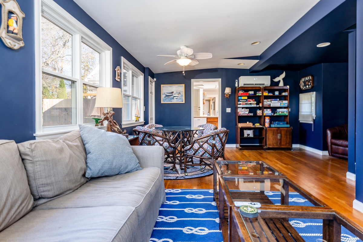Askeleet kauniille hiekkarannalle ja vain mailin päässä Chathamin sydämestä! Tässä viehättävässä, äskettäin remontoidussa rantatalossa on mukavuuksia, joita tarvitset hyödyntääksesi aikasi ystävien ja perheen kanssa. Vain 300 jalan päässä Little Beachistä ja 5 minuutin kävelymatkan päässä Chathamin majakasta ja majakkarannoista. Olemme tehneet uudesta kodistamme täydellisen paikan kokoontua ja rentoutua. Kaikissa makuuhuoneissa ja olohuoneessa on ilmastointi. Grillaa takaterassilla, kävele kaupunkiin, huuhtele ulkosuihkussa... tässä talossa on kaikki!