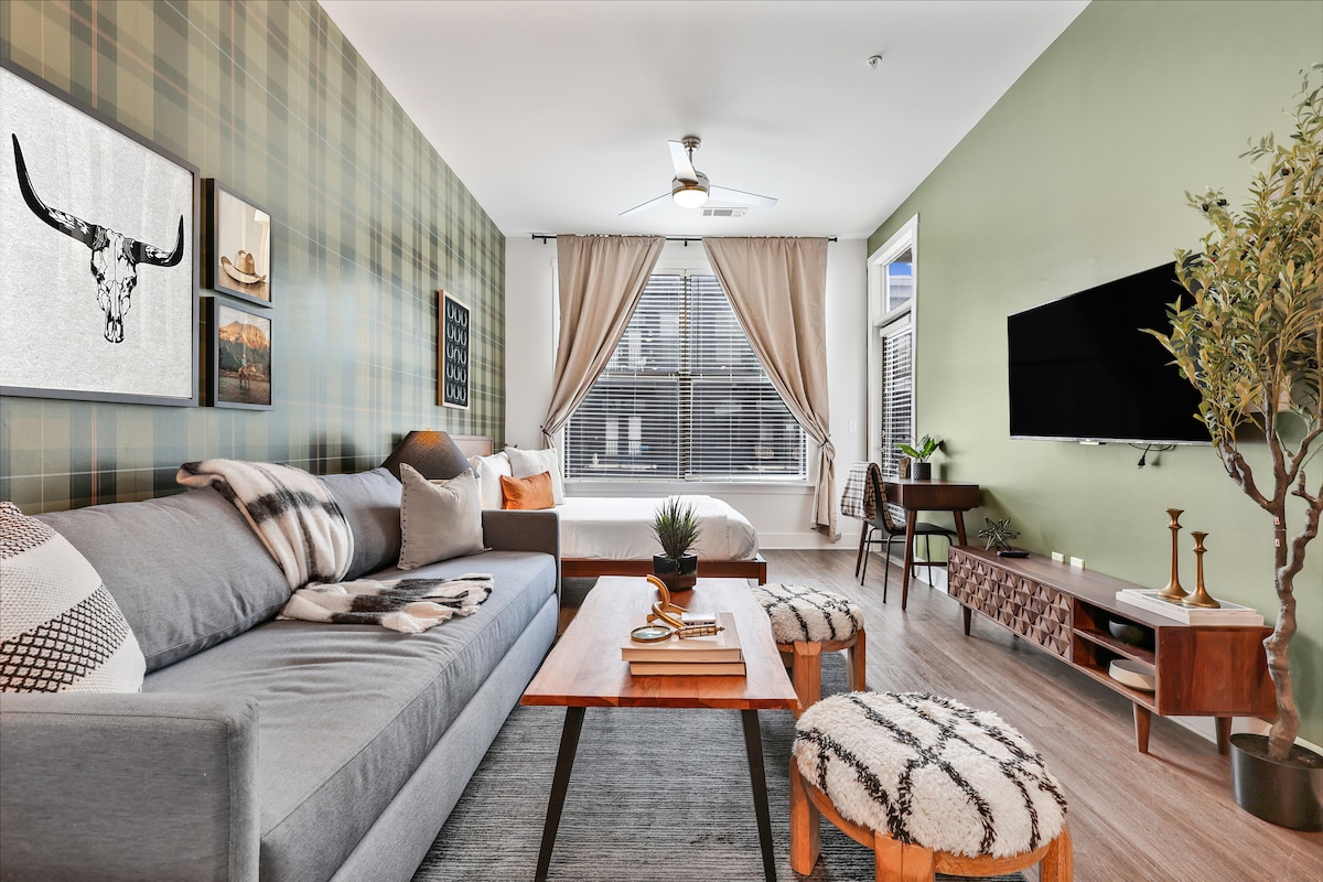 Our 1st luxury apt in the Burnham building. I had so much fun designing this one with the assistance of my amazing designer friend. PERFECT location to get the FULL Nashville experience! Walking distance to all attractions. Enjoy the GORGEOUS pool by day & fire pit at night, plus a gym! Broadway (Honky Tonks & Live Music), Bridgestone, Nissan Stadium, The Music City Center, Ryman Auditorium, The Convention Center, Honky-Tonks, Printer's Alley, Ole Smoky Moonshine & more.