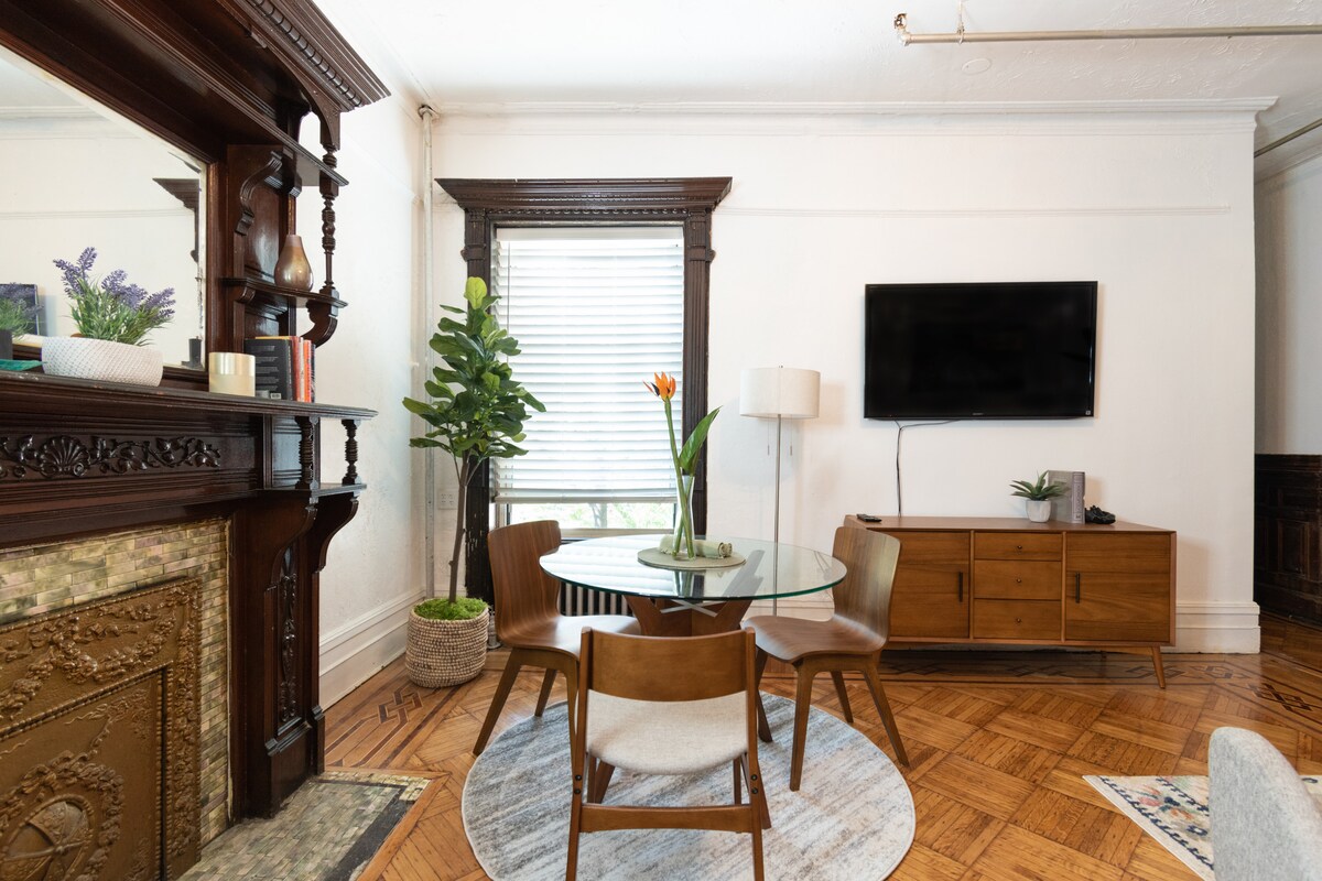 Tyylikästä modernia mukavuutta rauhallisessa historiallisessa kiinteistössä, josta on helppo pääsy suosittuihin paikallisiin Brooklynin nähtävyyksiin, kuten Prospect Parkiin, Brooklyn Botanic Gardensiin ja Brooklyn Museumiin. Lyhyt kävelymatka metroon ja 20 minuutissa olet Manhattanilla. Tutustu New Yorkiin ja nauti sitten koko kerroksen rauhallisesta lomakohteesta, jossa on 2 makuuhuonetta ja olohuone sekä istuinalue ja äskettäin remontoitu kylpyhuone. Majoittajasi asuvat paikan päällä varmistaakseen turvallisen ja mukavan ympäristön.