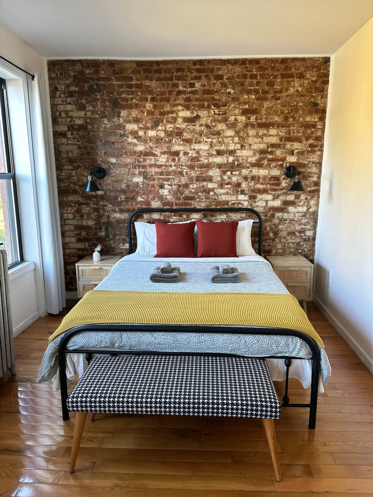 Tervetuloa Tripoli Artisan Lofts -kohteeseen! Tämä taiteellisesti suunniteltu 3 makuuhuoneen ja 2 kylpyhuoneen asunto Bushwickin sydämessä on täydellinen tukikohta ryhmille, jotka haluavat nauttia Brooklynista. Sitä ympäröivät ikoninen katutaide, uskomattomat ruokapaikat ja vilkas yöelämä. Ulkokatolla on terassi, joka on harvinainen New Yorkin helmi. Siellä on riippumatto ja valoketjut. Ilmainen katupysäköinti ja 5 minuutin kävelymatka metroon tekevät siitä ihanteellisen perheille ja ystäville, jotka haluavat hauskan ja vaivattoman majoittumisen lähellä kaikkea toimintaa.
