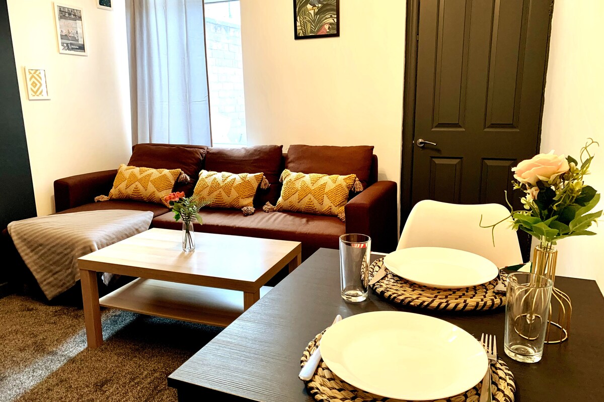 Majoitu Sheffieldin sydämessä: Rentoudu tyylikkäässä 1 makuuhuoneen huoneistossa, jossa on terassi ja mukava vuodesohva - täydellinen rentoutumiseen kiireisen päivän jälkeen. 📍 Ensisijainen sijainti: ➡️ Kävele Sheffield Unitedin stadionille. ➡️ Tutustu trendikkääseen Ecclesall Roadiin, jossa on kahviloita, baareja ja kauppoja. ➡️ Kätevä pääsy Sheffieldin yliopistoon, Sheffield Hallamin yliopistoon ja paikallisiin sairaaloihin.