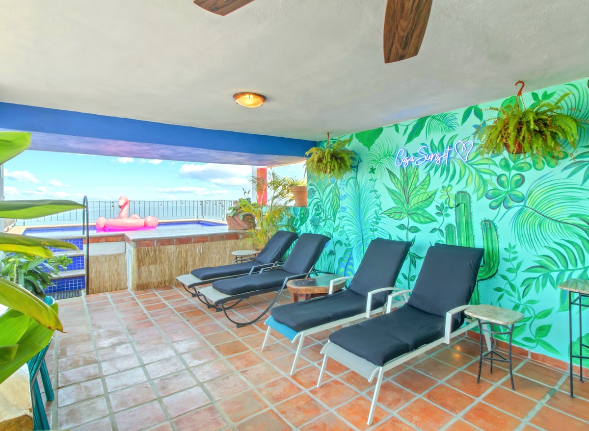 Tämä kodikas yksiö on Puerto Vallartan paras paikka katsella auringonlaskuja! Herää upeisiin merinäkymiin ja nauti kultaisista auringonlaskuista joka päivä turvallisessa ja rentouttavassa paikassa PV:n sydämessä, vain muutaman askeleen päässä rannalta ja ikoniselta Malecónilta/Boardwalkilta PARHAAT AURINGONLASKUT! Panoraamanäkymä, useita uima-altaita ja aurinkoterasseja sekä mukava vuode, ilmastointi, täysin varustettu keittiö ja nopea internet Ihanteellinen, jos etsit mukavuutta ja parasta sijaintia tutustuaksesi ravintoloihin, kauppoihin, taiteeseen ja yöelämään
